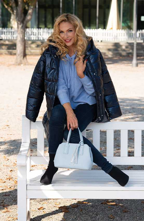 Ton sur ton durch die kalten Jahreszeiten. Ein kuscheliger Strick-Hoodie mit warmer Strickjacke – so wird Dir sicherlich nie kalt werden.